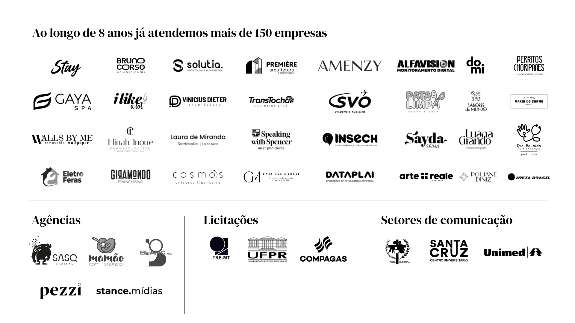 Ao longo dessa jornada, já atendemos mais de 150 clientes, desenvolvendo projetos que vão desde identidade visual até materiais gráficos e webdesign de sites institucionais. Nosso objetivo é transformar ideias em realidades visuais impactantes, com agilidade e criatividade.